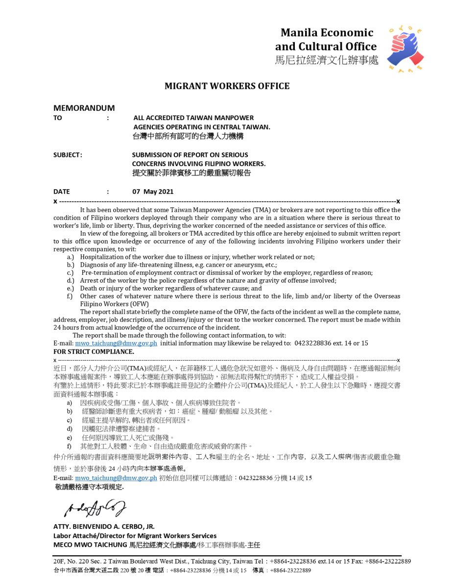 SUBMISSION OF REPORT ON SERIOUS CONCERNS INVOLVING FILIPINO WORKERS.