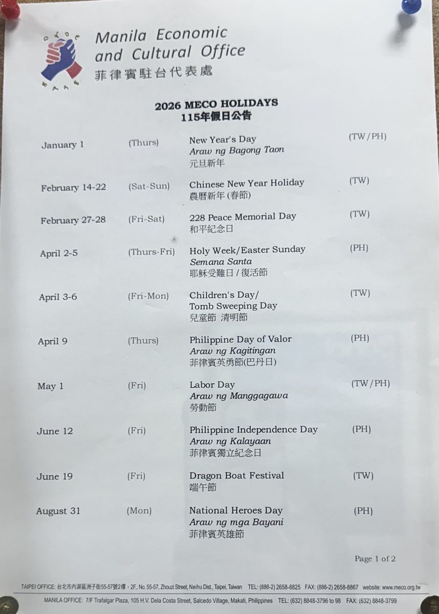MECO HOLIDAYS 2026